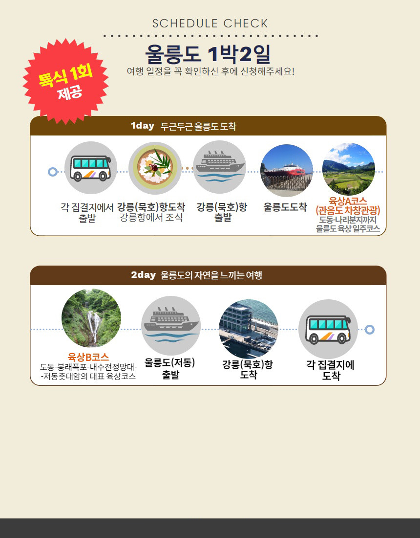 대전 청주 천안 충주 아산 출발 울릉도 1박2일