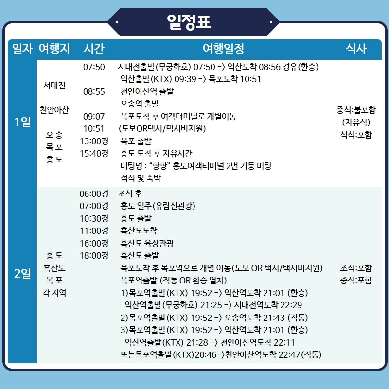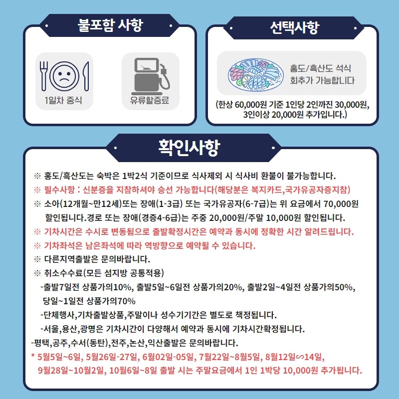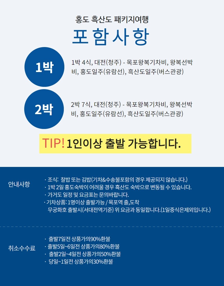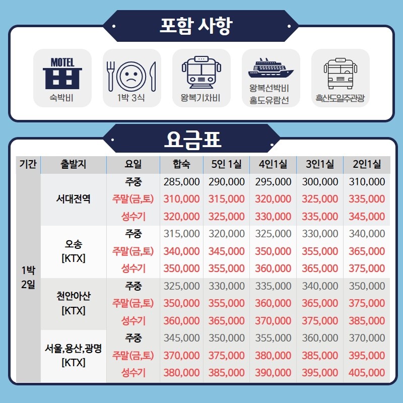 홍도기차여행 1박2일,2박3일 상품입니다.